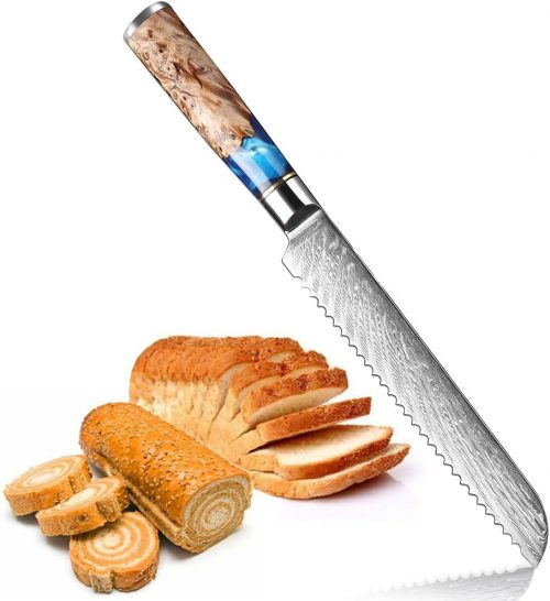 包丁の自重がかかりやすいように計算されているため、重心バランスにこだわりがあるのもポイントです。軽い力でも簡単に切れるように設計されています。パンをよく食べる方におすすめのダマスカス包丁です。