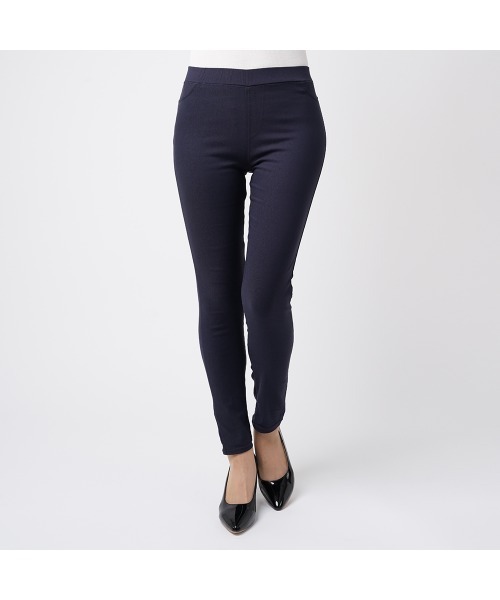 着回しやすいデニム調のレディース裏起毛パンツです。微起毛素材を使用しているため、厚みを抑えつつ美しいシルエットに仕上げられています。暖かさと美脚効果を兼ね備えた1着で、おすすめです。