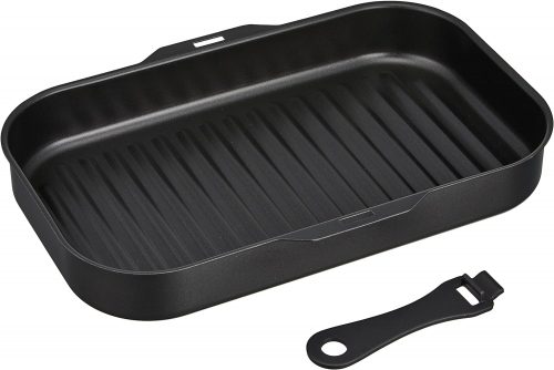 グリルと一緒に使えば、高い火力で調理できるため、食材が均等に焼き上がります。また、遠赤外線効果により、食材がふっくらと仕上がります。更に、時短調理も可能で、波状プレートによって脂もしっかりと落とせます。また、深型のため、煮込みハンバーグやグラタンの作成にも最適です。