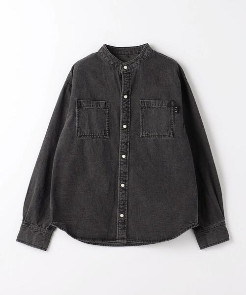 ノーカラーでシンプルなデニムシャツ。ゆったりとしたシルエットで、1枚で着るだけでなく、羽織りとしても便利です。