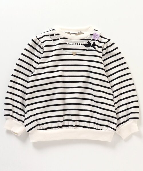 1枚でおしゃれに決まる子供服。ネックレスをつけているかのようなデザインが特徴です。カジュアルなアイテムであるトレーナーにデザイン性を追加することで、上品な印象に仕上がっています。