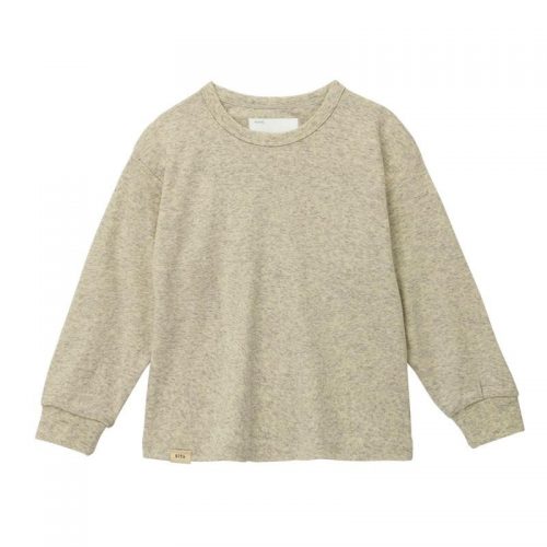 シンプルで着回しやすい子供服。素材には綿100%のフライスを使用しています。柔らかな風合いで伸縮性も優れています。デザインはゆったりとしており、着脱も簡単です。また、前裾にはタグが付いており、前後を間違えにくいのも利点です。