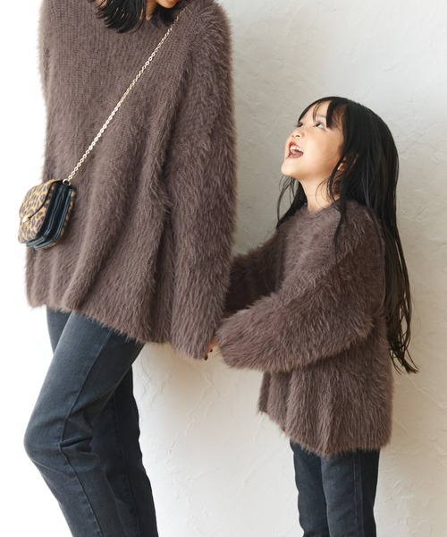 大人サイズも取り扱っており、親子でお揃いコーデが楽しめる子供服です。毛足の長いシャギーニットが、暖かさを感じさせる印象を与えます。洗濯機で洗えるので手入れも簡単です。
