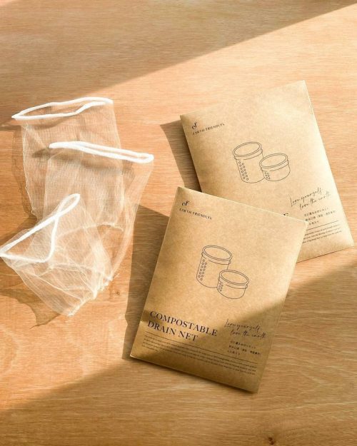 コーンスターチ由来の生分解性プラスチックとコットンで作られた水切りネットです。環境に配慮したアイテムをお探しの方におすすめです。