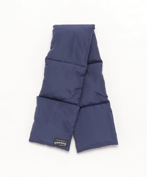 シンプルで機能的なダウンマフラー。先端に控えめなロゴが刻まれた、シンプルで使い勝手の良いデザインが魅力です。