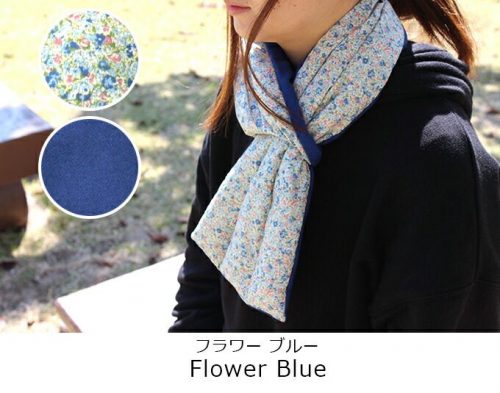 ポリエステルを使って表地を作り、裏面を起毛にすることで肌触りをよくしているのが特徴です。サイズは約100×15cmと長めで、先端のホールに片方を通すだけでスマートに着用できます。また、必要ないときは折りたたんでコンパクトに収納できるポケッタブル仕様です。