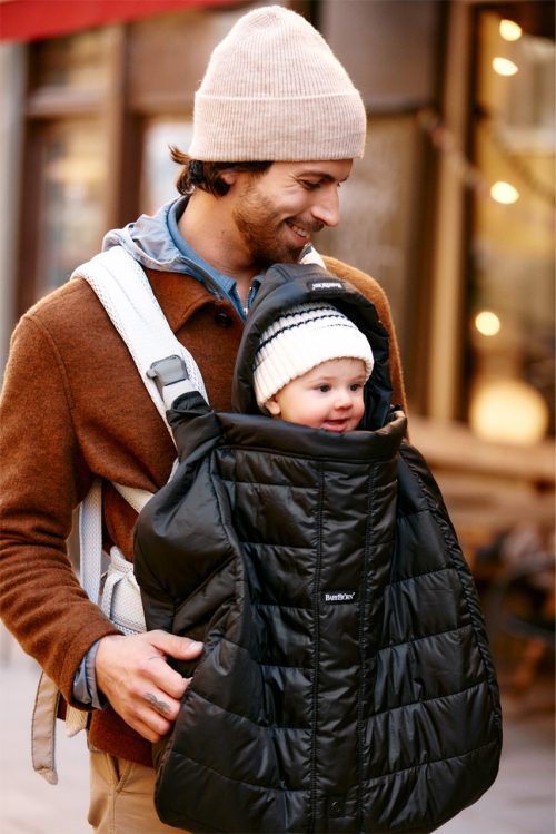 軽量で暖かいベビーキャリア用ケープ。表地と裏地には100%リサイクルポリエステルを使用しています。中綿には最新のサーモア素材を採用し、暖かさをキープします。