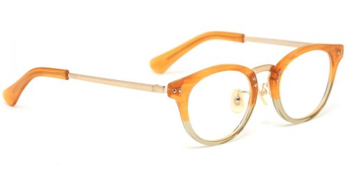 意味が変わらない場合は、次のように書き直すことができます: バイカラーの配色がおしゃれな、ボストンクラブの丸型メガネです。イエロー×ゴールドの明るい色合わせなので、表情を明るく見せることができます。また、適度な太さのフレームを採用しているため、カジュアルな服装にも合わせやすいです。おすすめポイントです。