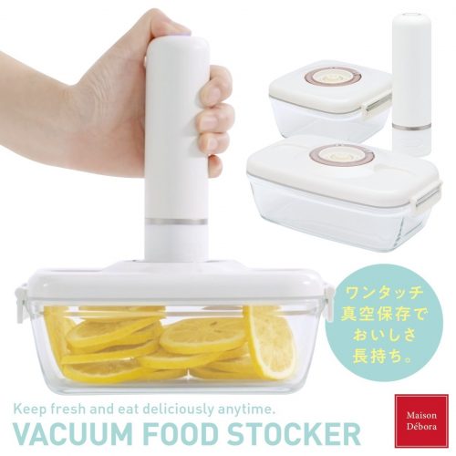 食品の日持ちを長くするために空気を遮断する真空保存容器です。容器内の空気を抜いて真空状態にすることで、食品の酸化を抑えます。作り置きやすぐに食べないものを保存する際にも便利です。