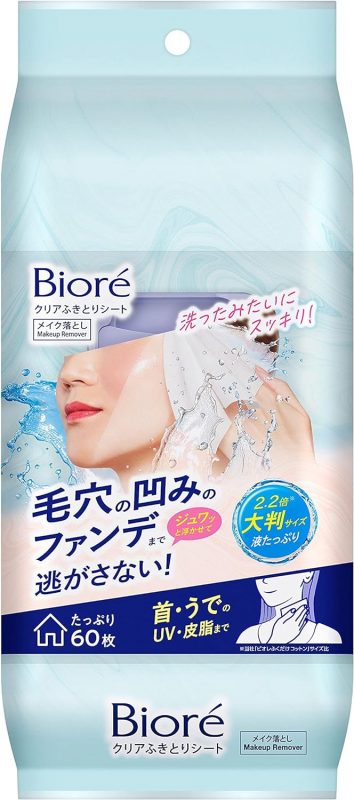 大判タイプのシートで、ファンデーション以外にもマスカラなどのアイメイクもしっかり落とせる設計です。メイク落としとしてだけでなく、拭き取り化粧水としても使用できます。また、持ち運びに便利な14枚入りサイズもあります。さらに、W洗顔不要タイプなので、外出中のメイク直しや旅先でのスキンケアにも最適です。