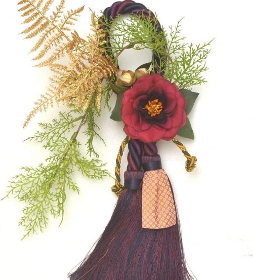 タッセルを使ったおしゃれなデザインの正月の飾りです。花飾りにはアートフラワーを使用しています。繊細なグラデーションの表現が得意であり、美しさを保ちながら長く使用することができます。