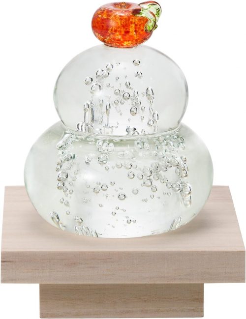 ガラス製の鏡餅の正月の飾り物です。繊細な雰囲気と可愛らしさを兼ね備えたこの製品は、ガラスアーティストの岩沢達氏によって一つずつ丁寧に作られています。