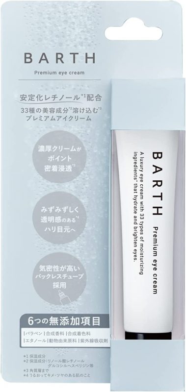 チューブを押すと、ヘッド部分の中央からクリームが出てくるのも特徴。クリームには、うるおい成分の卵殻膜エキスやレチノールを配合しており、ハリやツヤを与えます。また、目元専用につくられた保湿成分のハロキシルやアイセリルを含んでいるのがポイントです。