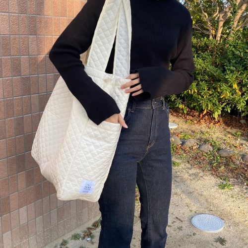 ふわふわとしたキルト生地のお気に入りの活動用バッグです。サイズは縦40×横40×マチ15cm。持ち手の高さは25cmです。クッションを内蔵した持ち手を採用しています。肩への負担が少なく、快適な使い心地が特徴です。
