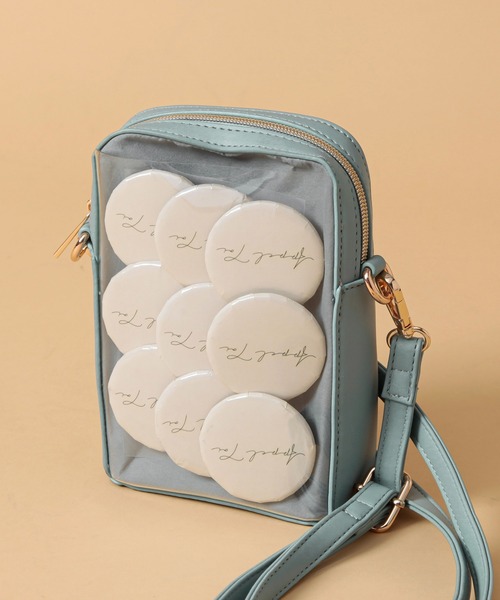 バッグの外側には、6つのクリアポケットがあり、大きさも異なります。これにより、缶バッジやカードなどをディスプレイしながら持ち運ぶことができます。カラーはアイボリーとグレーが用意されています。機能的なショルダータイプの推し活バッグをお探しの方にはぴったりです。