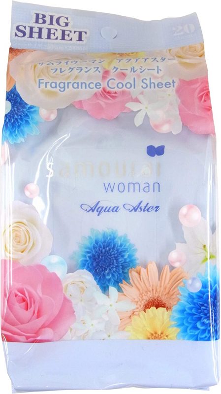 透明感のある香りが魅力の汗拭きシート。香りは、人気の「サムライウーマンの香り」と「サムライウーマン アクアアスターの香り」の2種類あります。香りにこだわる方におすすめです。