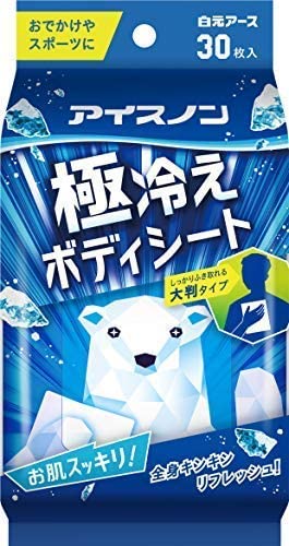 シロクマが描かれた、涼しげなパッケージがかわいらしい汗拭きシート。すっきりとした爽快感のあるシートで、火照った体をクールダウンさせたいときにおすすめです。ワキや首筋など、全身に使えます。