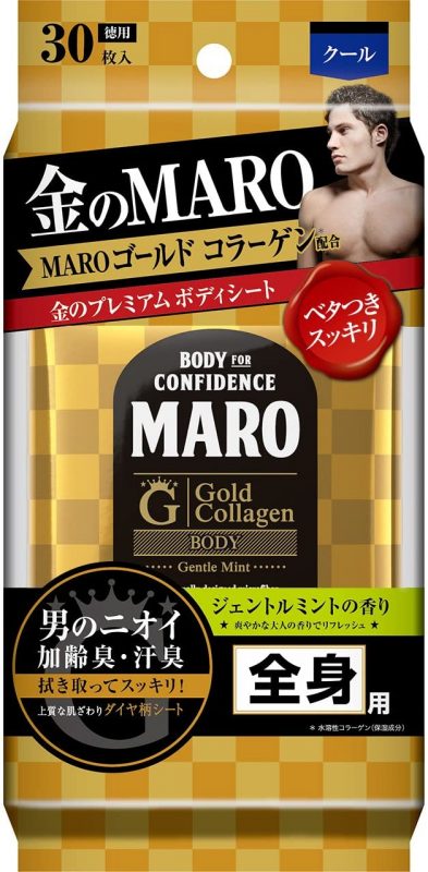 うるおい感のある、プレミアムな拭き心地が特徴の汗拭きシート。保湿成分として水溶性コラーゲン・ローヤルゼリーを、皮膚コンディショニング剤として金を配合しているので、気持ちよく肌を拭けます。
