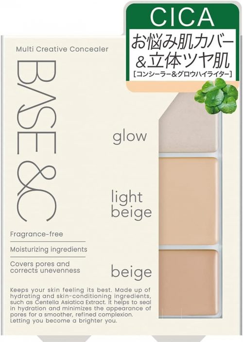 多機能なパレットタイプのコンシーラー。肌トラブルをカバーするベージュが濃淡2色と、繊細パールが配合されたグロウハイライターの3色がセットになったパレットです。凹凸フラットパウダーによるメイクアップ効果で、なめらかな肌に見せます。