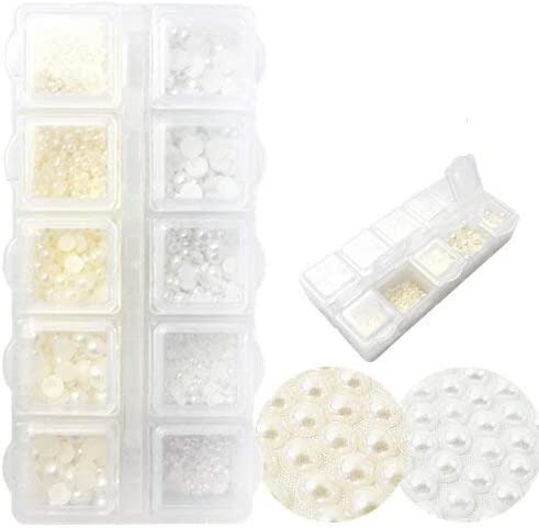 大量のパールストーンがセットになった製品。クリーム色とホワイト色のパールストーンが、それぞれ4種類のサイズでセットになっています。1.5mm・2mm・3mm・4mmという一般的なサイズが含まれており、使いやすいネイルストーンです。