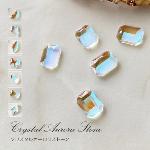 美しいオーロラの輝きも注目ポイントです。さまざまな形状があり、ムーン、ダイヤ、アーモンド、リボン、ティアドロップなどが取り揃えられています。