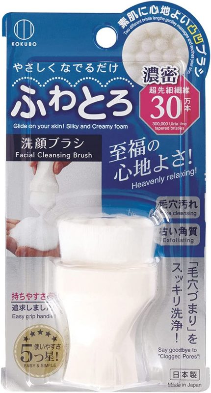 特徴的な洗顔ブラシは、肌にやさしい肌触りが特徴です。約30万本の超細繊維が洗顔フォームをふわふわに泡立てて、毛穴の汚れや古い角質をしっかりと落とします。ブラシの表面はもこもことした形状をしており、肌にも優しいです。