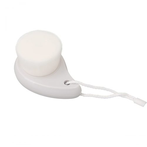 紐がついていて、フックにかけて保管できるのも便利なポイントです。本体はABS樹脂、毛や紐はポリエステルでできているため、お手入れしやすい洗顔ブラシです。