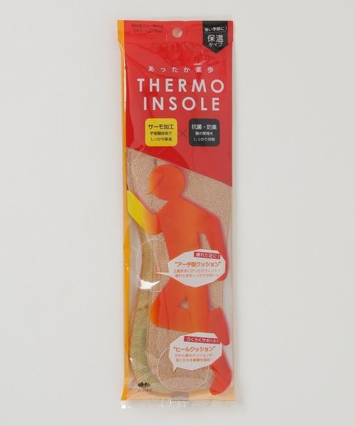 土踏まずのアーチクッションと、かかとのクッションで足をサポートする、薄手のインソールです。保温機能が搭載されており、25℃前後をキープできるのが特徴。宇宙服にも用いられている技術を応用した、蓄熱マイクロカプセル加工剤を使用しています。