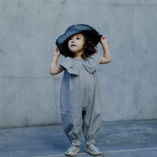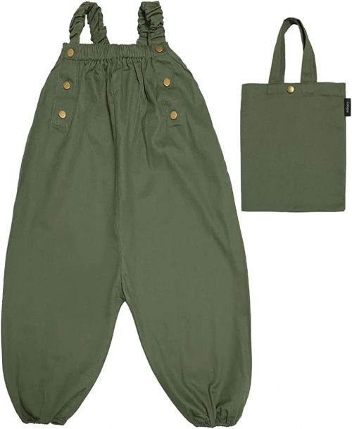 ポケッタブル収納できるサロペットタイプのプレイウェア。外遊びのあとにプレイウェアを脱がせたら、裏返しにしてコンパクトに収納できるのが嬉しいポイントです。