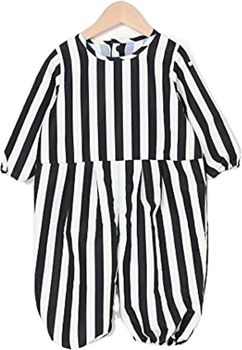 モノトーン配色がおしゃれなプレイウェア。肩ひも・胸周り・裾にはゴムが入っているため、着替えが楽に行なえます。裾のゴムにより、サイズ調節しやすいのも特徴です。