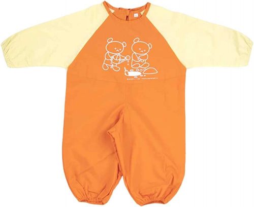 1年中使える長袖タイプのプレイウェア。特殊なコーティングをほどこした防水布を使用しているのが特徴です。夏場の砂場や水遊びはもちろん、冬場の雪遊びにも重宝します。