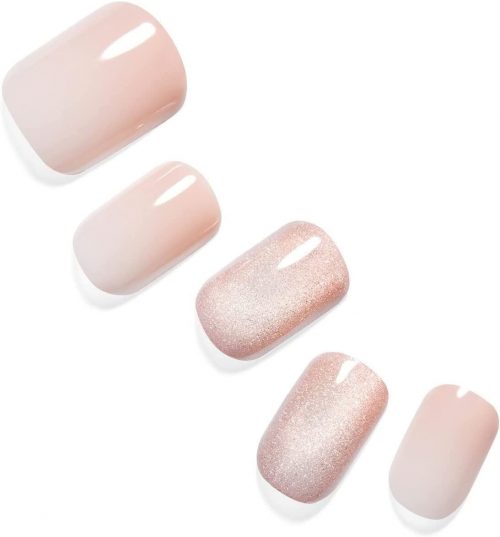 本製品は、ネイルチップの裏面に粘着剤が付いており、保護フィルムをはがすだけで手軽に付け爪を楽しめるのがポイント。「Shimmering Cream」は、肌なじみのよいピンクカラーで、幅広い年代の方に向いています。