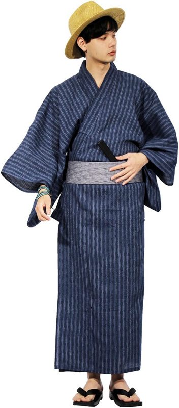 サラッとした肌触りの綿素材で作られた、しじら織りのメンズ浴衣。通気性に優れているため、涼しく着られるのが特徴です。人混みで蒸しやすい夏祭りや、花火大会にぴったり。浴衣・帯・下駄の3点セットなので、コーディネートに困りません。