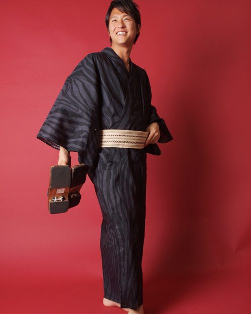 味のある綿・麻の混紡素材で作られた、おしゃれなメンズ浴衣。珍しいゼブラ柄をあしらった、トレンド感のあるデザインが目を引きます。シックな黒をベースにしているため、派手になりすぎず、30代以上の大人の男性でも着やすいのが魅力です。