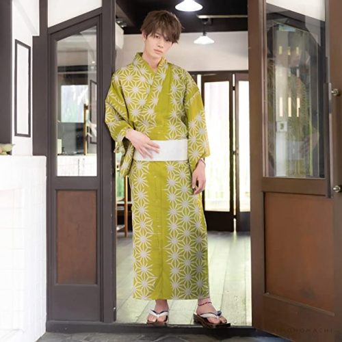 和の雰囲気が漂う、抹茶色を採用したおしゃれなメンズ浴衣。伝統的な麻の葉柄が特徴で、日本の風情を感じられるデザインに仕上げられています。目を引く色合いなので、周りと差をつけたい方や、2着目の浴衣を検討している方におすすめです。