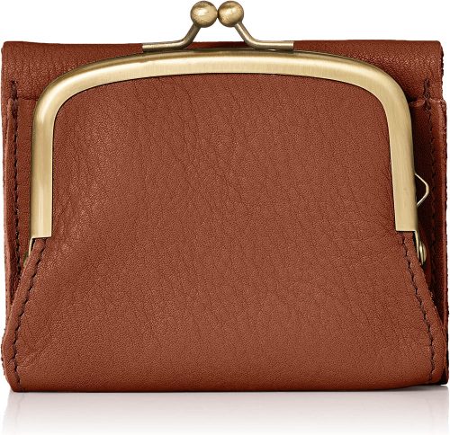 コンパクトな二つ折りタイプのミニ財布です。ナチュラルな風合いのレザーにブランドロゴが型押しされており、さりげないアクセントに。札入れ、6つのカードポケットに加えて、がま口タイプの小銭入れが備わっています。