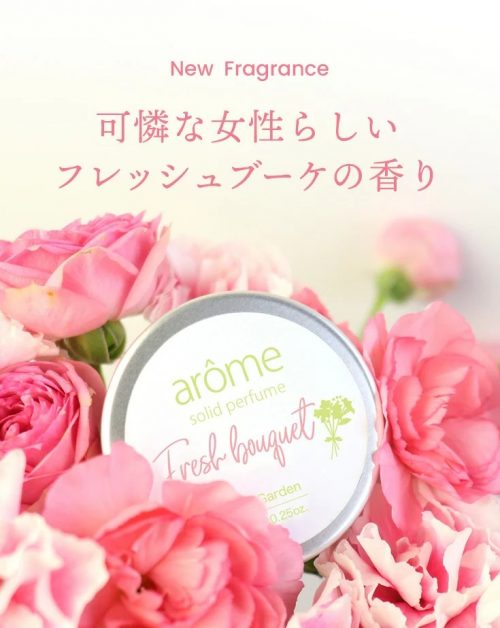 上品なフレッシュブーケの香りのレディース練り香水。トップノートにレモン・グレープフルーツ・リーフグリーンを、ミドルノートにミュゲ・ライラック・ラベンダーを、そしてラストノートにムスク・アンバー・ラズベリーを採用しています。