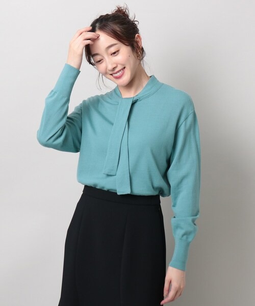 アンタイトル(UNTITLED) オフィスカジュアル ボウタイ ハイゲージニット 洗える ウール100%