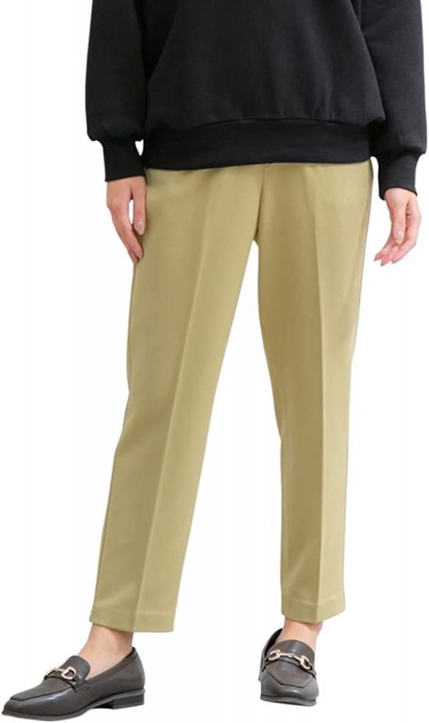 冬の着こなしにきちんと感をプラスできるセンタープレス入りのテーパードパンツです。シンプルなトップスとパンプスを合わせれば、好印象な冬のオフィスカジュアルコーデが完成。ウエストの後ろ側にゴムを入れることで、楽な穿き心地も実現しています。