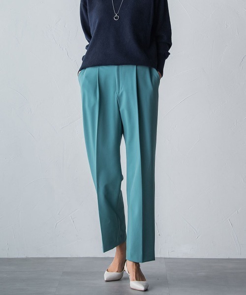適度にゆとりを持たせた、トレンド感のあるテーパードシルエットが特徴のパンツです。センタープレスが入っており、オフィスカジュアルで求められるきちんと感をキープ可能。明るい色味が揃っているため、冬のオフィスカジュアルではベーシックカラーのニットとの組み合わせがおすすめです。