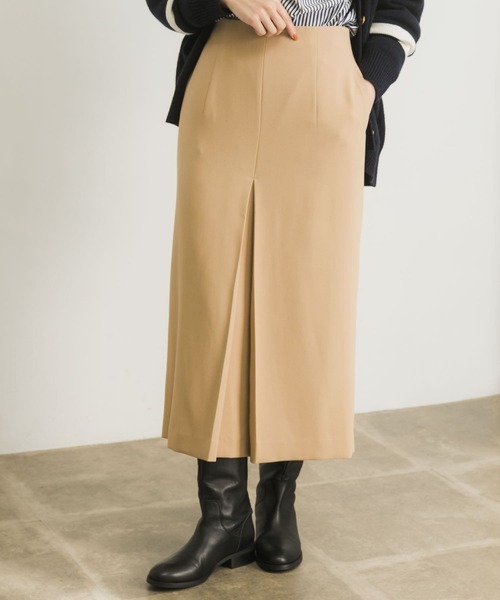 美しいIラインシルエットが特徴のスカートです。フロントにボックスタックを施し、シンプルデザインのアクセントに。幅広いアイテムと合わせやすく、冬のオフィスカジュアルコーデの着回しに重宝します。