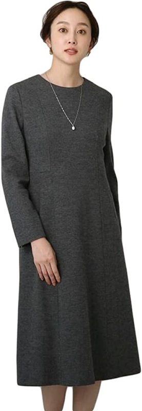 きちんと感のある、冬のオフィスカジュアルにおすすめのワンピース。絞りが強すぎない自然なフィット&フレアシルエットが特徴で、柔らかな印象の冬オフィスカジュアルコーデが実現します。