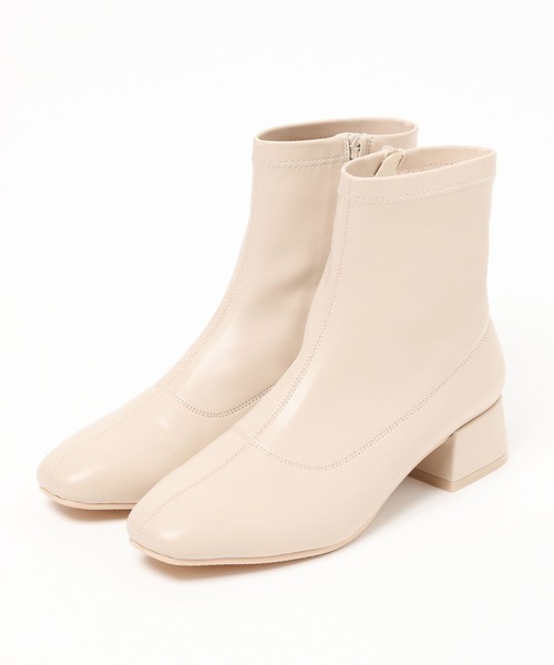 冬のオフィスカジュアルコーデにマッチするミニマルデザインのショートブーツ。スッと伸びるつま先のラインが美しく、スマートな足元を演出します。