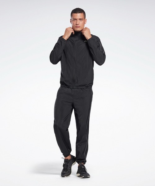 イギリス発の人気スポーツブランド「リーボック」のメンズジャージです。メイン素材には、耐久撥水加工を施したナイロンを採用。少々の雨なら濡れても生地に染み込みにくく、速乾性も優れています。