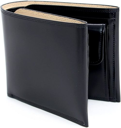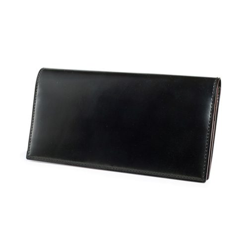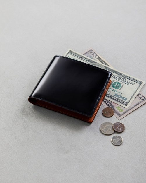 美しいツヤのあるコードバンを使用した二つ折りの革財布。ヨーロッパから取り寄せた原皮を日本のタンナーが約6ヶ月もの歳月をかけて仕上げています。深みのある自然な光沢が特徴。素材を活かしたミニマルなデザインも魅力です。