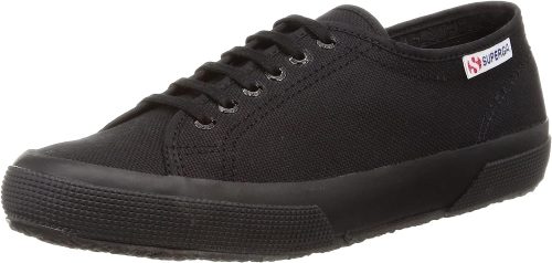 イタリアのスニーカーブランド「スペルガ」の黒いスニーカー。全体が黒色で、シンプルなデザインが特徴です。上品さがあり、オフィスカジュアルコーデにも適しています。