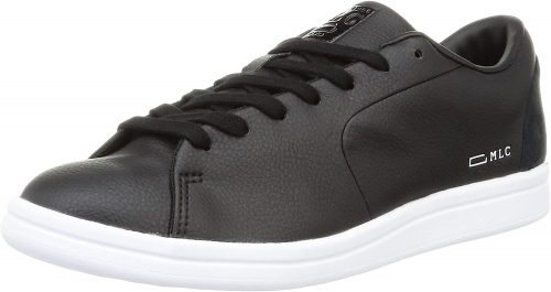 レザーのテクスチャーが上品な黒スニーカー。飾り気のないシンプルなデザインが魅力です。柔らかなレザーの美しい質感が、シンプルさの中で際立っています。