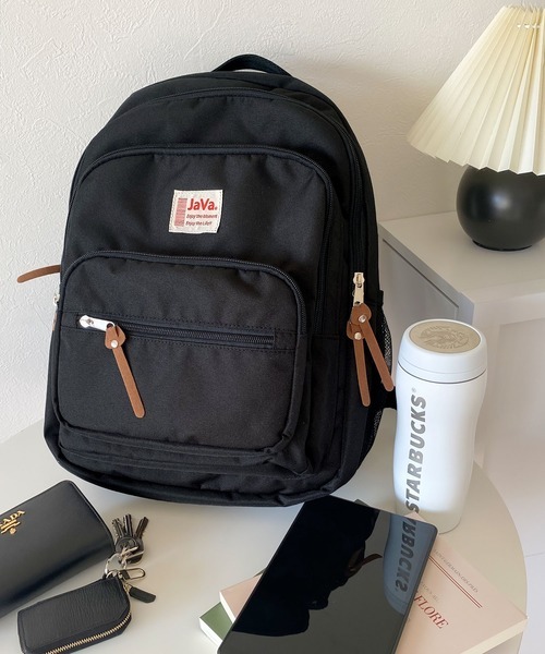 スタイリッシュなデザインでありながら、外ポケットやサイドポケットが付いているため、収納力が高く魅力的です。ノートや教科書だけでなく、小物もしっかりと収納することができます。さらに、背面にファスナーがついているため、出し入れが簡単で便利です。