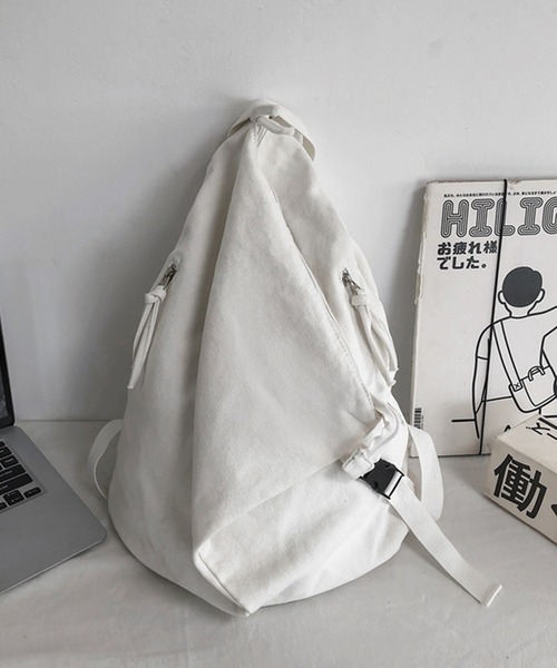 キャンバス生地で作られた、ナチュラルな風合いのリュック。フロントの中央にファスナーを配置したユニークなデザインや、少し異なる変形フォルムが注目を集めます。周囲と差別化したい女子大生におすすめのアイテムです。