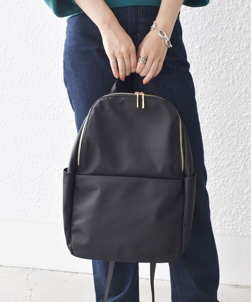 上品な光沢を放つ、ナイロン素材のシンプルなバッグパック。ゴールドのファスナーを採用した、大人っぽいデザインが魅力です。フロントの大きめポケットは開口部が広いため、中身を取り出しやすいのが特徴。使い勝手のよいバッグパックが欲しい方におすすめです。